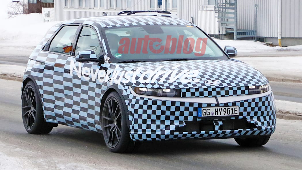 Камуфляж тонкий, но на этом прототипе не так уж много того, что нужно скрывать. Кузов почти такой же, как у обычного Ioniq 5. Единственными изменениями, похоже, являются увеличенные нижние воздухозаборники в переднем бампере и расширители крыльев для установки более широких колес и шин N. Мы можем с уверенностью сказать, что серийный Ioniq 5 N будет более захватывающим визуально, вероятно, с большими спойлерами, боковыми юбками и, возможно, крутыми треугольными стоп-сигналами, как на других моделях N. Возможно, это просто механический мул.